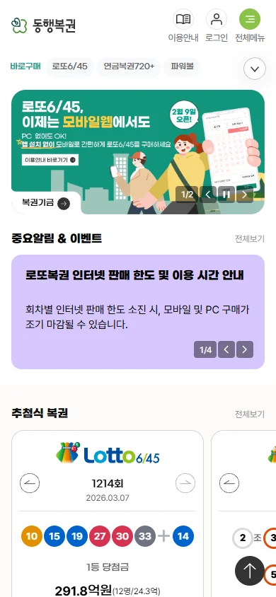 동행복권 모바일 웹 메인 화면 (출처: 동행복권)